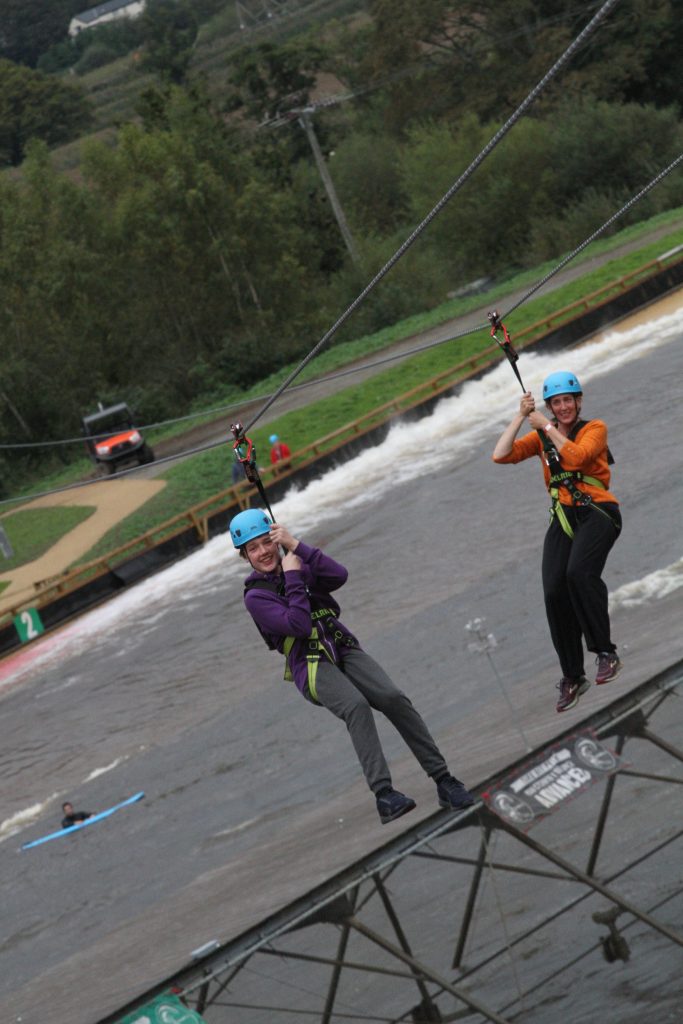 Once we arrived we had a quick look around before meeting our instructors. They showed us how to put on our harnesses and hard hats, they then gave us a safety talk before walking us up the 12m launch tower.